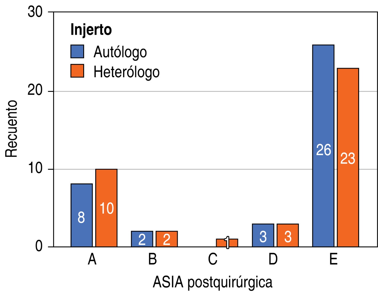Material and methods: an observational, descriptive, retrospective and cross-sectional study was carried out, the patients were evaluated with imaging studies of the thoracolumbar segment with bone graft placement and the degree of consolidation of the autologous and heterologous graft was determined.