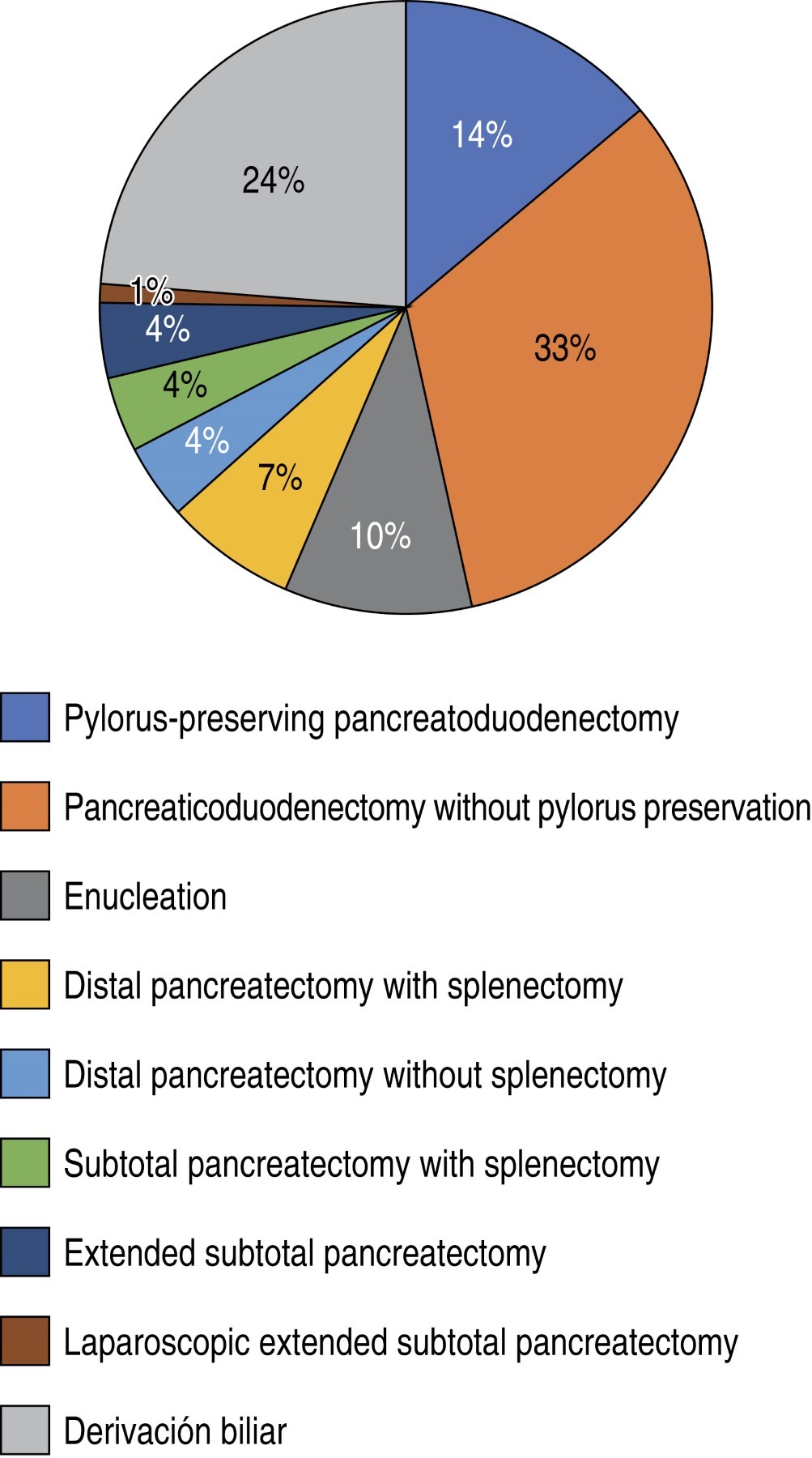Pancreatic resection is a surgery with a mortality rate in most hospitals with a certain degree of experience that does not exceed 6%. However, postoperative morbidity continues to be high, being reported up to 50-60%, among them the medical and surgical complications common to any postoperative major abdominal surgery (Clavien-Dindo classification), others belonging to a specific group concerning these procedures, such as pancreatic fistula, hemorrhage and delayed gastric emptying as defined by the group of experts of the "International Study Group of Pancreatic Surgery" (ISGPS), which is why many authors recommend performing such management in high volume centers to reduce postoperative morbidity. Comparing with the results published in a German study on mortality in patients undergoing pancreatic resections performed in hospitals with low and high surgical volume, they report 11.8 vs. 8.6% mortality, respectively, which shows a significant decrease in mortality in specialized centers where at least 5 pancreatic procedures are performed per year.18,19