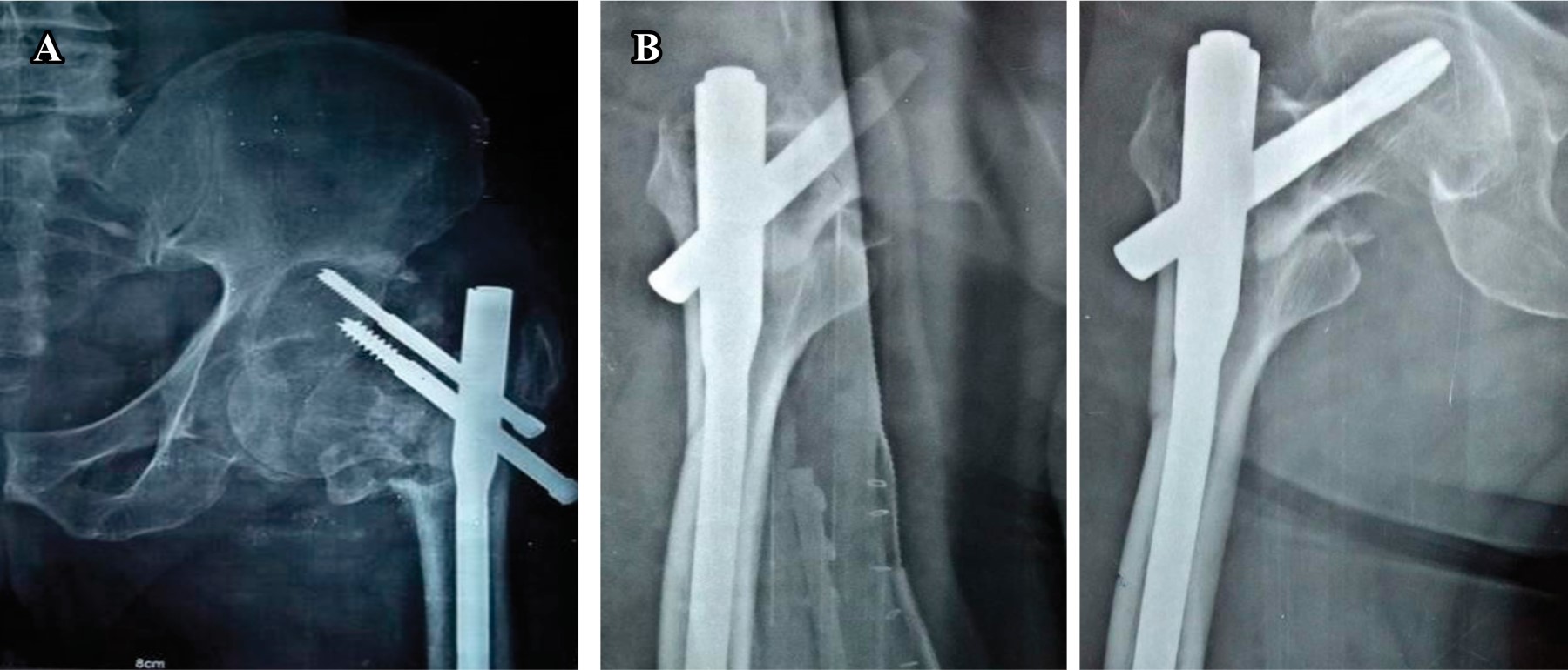 Complications with peritrochanteric fractures primarily arise from fixation issues rather than from union or delayed union, as the peritrochanteric area consists of cancellous bone.3,6 The strength of the fracture fragment-implant assembly depends on various factors, including bone quality, fragment geometry, reduction quality, implant design, and implant placement.3,6 Among these factors, surgeons can directly control the quality of the reduction, the choice of implant, and its placement. The preferred type of fixation device for intertrochanteric fractures remains a subject of debate.5