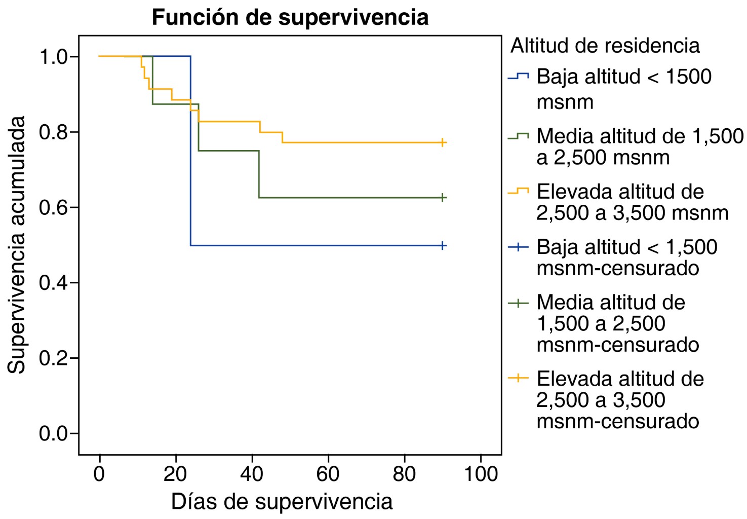 Conclusion: survival in patients native to high altitude tends to be greater compared to that of non-acclimatized patients who reside at medium and low altitudes, and not being native to high altitude is associated with a tendency to require more days of mechanical ventilation, longer stay in intensive care and more days of hospitalization.