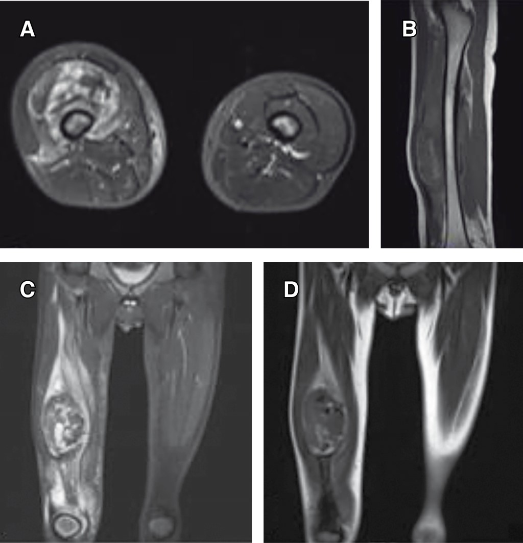 Material and methods: the objective of this retrospective study is to describe three clinical cases of circumscribed myositis ossificans; the first one is a 10-year-old girl with a post-traumatic cervical injury, the second one is an 11-year-old boy with an atraumatic-type distal thigh injury, and the third one is an 8-year-old boy with a post-traumatic right thigh tumor.