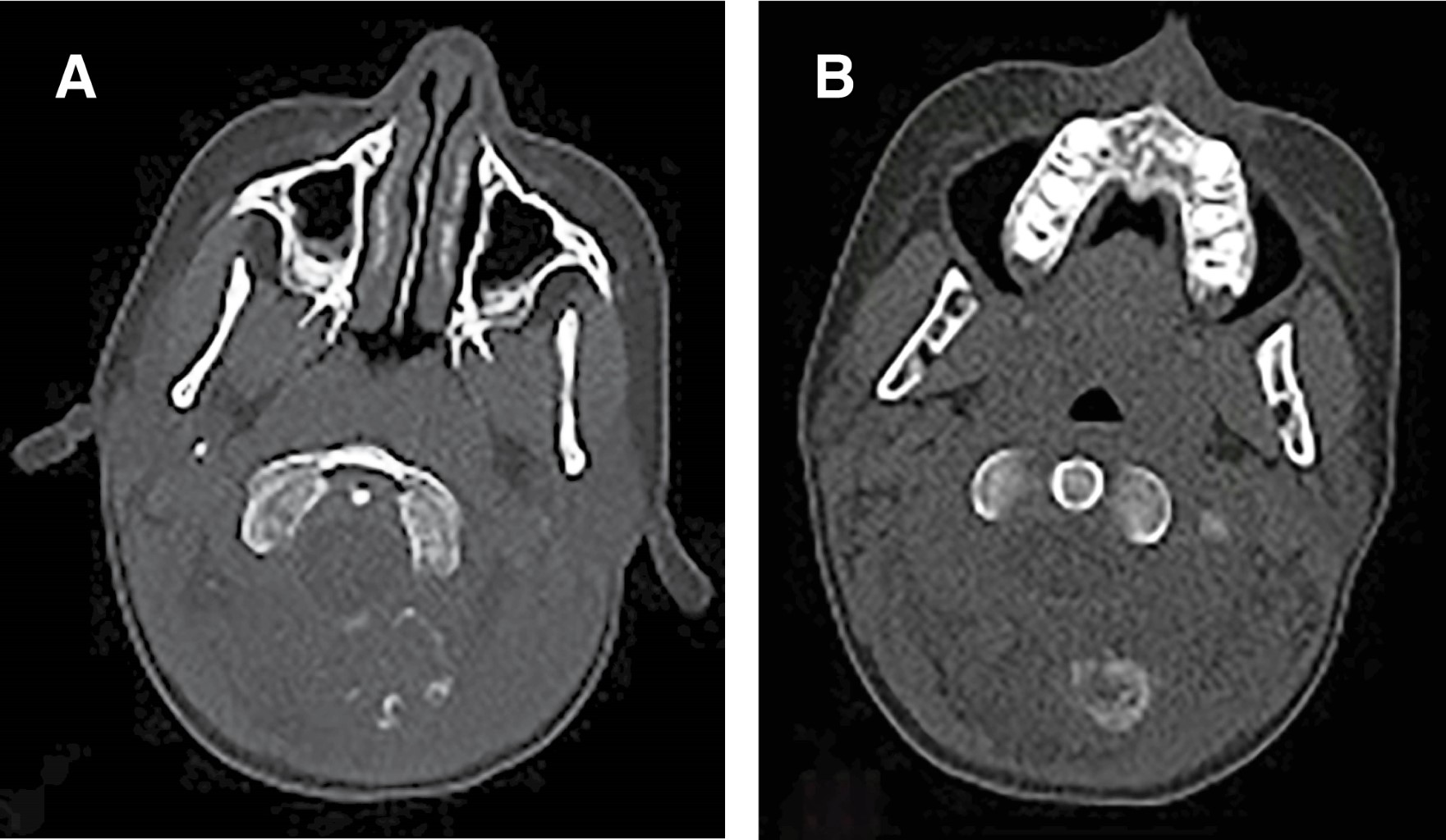 Results: the diagnosis was made on the basis of the clinical presentation, radiologic imaging and histopathological findings. The results obtained by conservative treatment were good in all cases, with resolution of pain and progressive reduction in size of lesions, without registering complications during follow-up.