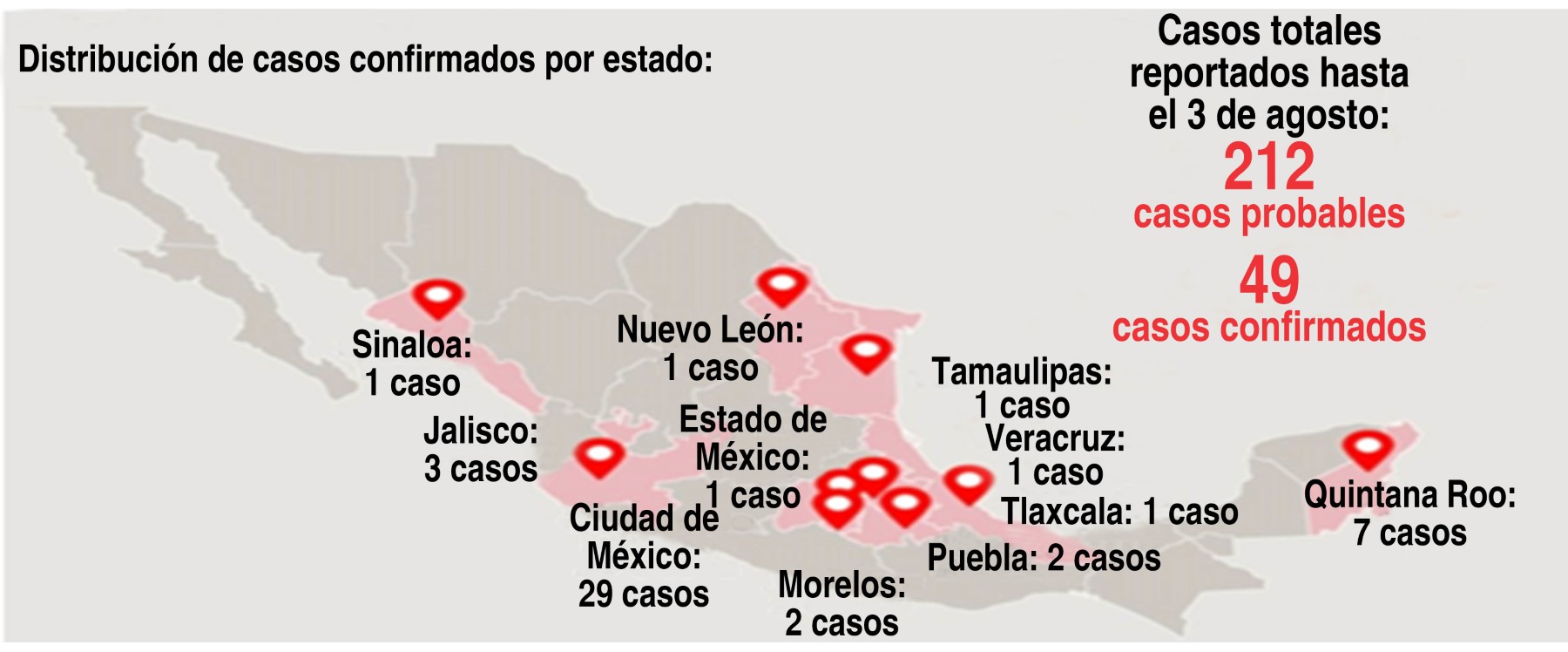 Informes quincenales para la vigilancia epidemiológica de viruela símica) en México 15/06/2023. Disponible en: https://www.gob.mx/cms/uploads/attachment/file/833598/Informe_Tec_MPOX_150623.pdf