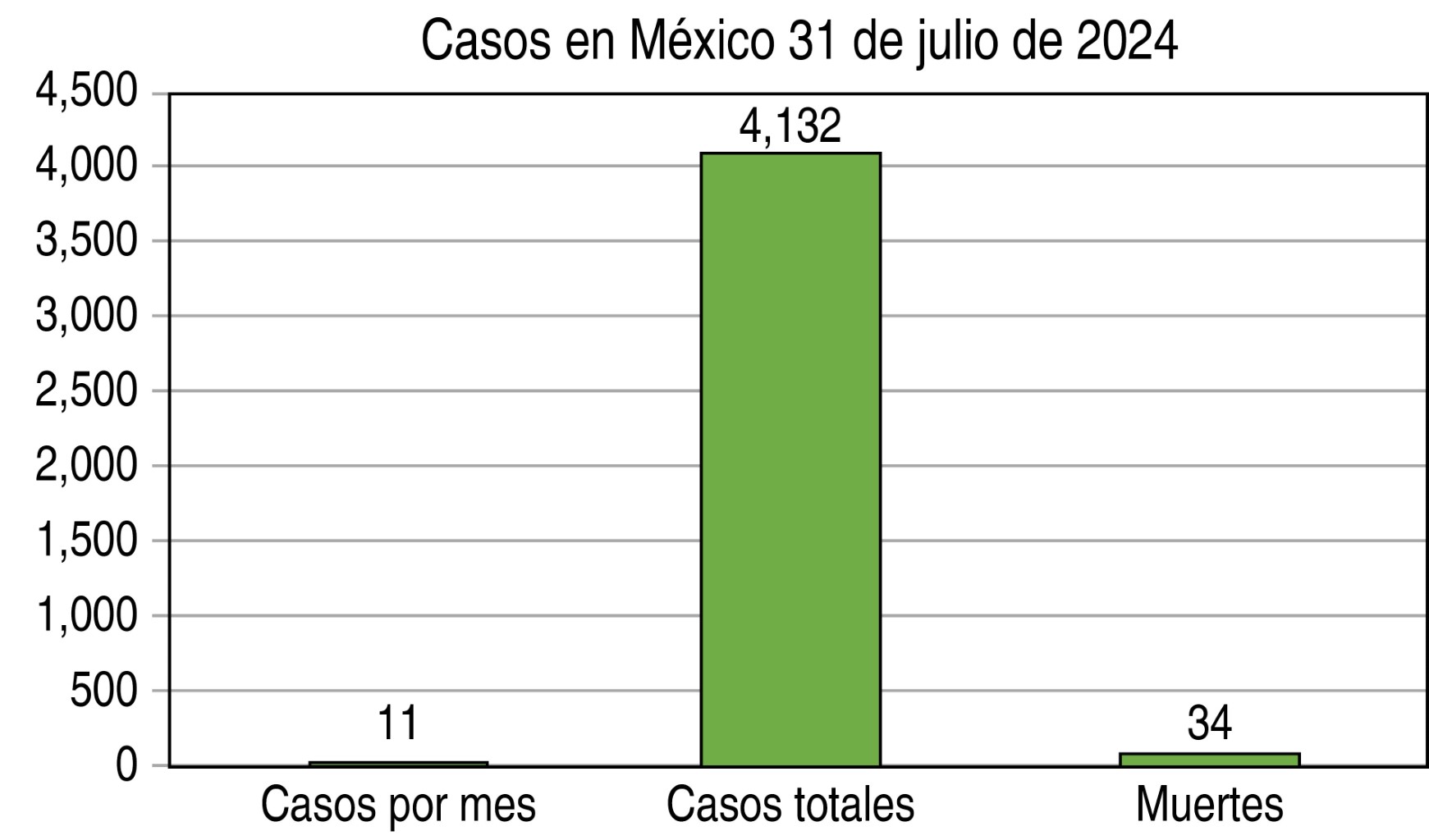 Monkeypox is caused by the monkeypox virus, a member of the Orthopoxvirus genus of the Poxviridae family. There are two genetically distinct groups (clades); it is a rare zoonotic disease endemic to certain areas of central and western Africa. In recent years, several outbreaks have occurred outside the African continent. This is the second time in two years that the WHO has declared it a public health emergency of international concern (PHE-IC9)1. From 2022 to August 17, 2024, 63,270 confirmed cases of Mpox were reported, including 141 deaths, in 32 countries and territories in the Region of the Americas. In Mexico, there are 4,132 confirmed cumulative cases (July 2024) of monkeypox in the 32 federal entities, with Nuevo Leon, Mexico City, State of Mexico, Jalisco, and Quintana Roo being the federal entities that accumulate the highest number of infections. It is transmitted mainly by direct or indirect contact with blood, body fluids, skin lesions, or mucous membranes of infected animals. A more worrying strain of Mpox, called Clade 1b, has now been identified in eastern Democratic Republic of the Congo, which is spreading along the border and into neighboring countries. Secondary transmission from person to person can occur through close contact with infected respiratory tract secretions or skin lesions of an infected person, and through sexual contact, or with objects recently contaminated with the patient's fluids or materials from the lesion. Diagnosis is confirmed by viral culture or molecular detection by polymerase chain reaction in skin lesions or pharyngeal exudate. Treatment is symptomatic; in 2022, tecovirimat, an antiviral that inhibits the VP37 protein, was authorized only for special cases. Contact and droplet isolation measures should be applied and suspicion should be reported to Public Health authorities. There are three mpox vaccines that should be used in people at risk. This is a basic and complete review of this pathology, until August 14, 2024, highlighting preventive measures, and the need for a specific global vaccination, as well as treatment.