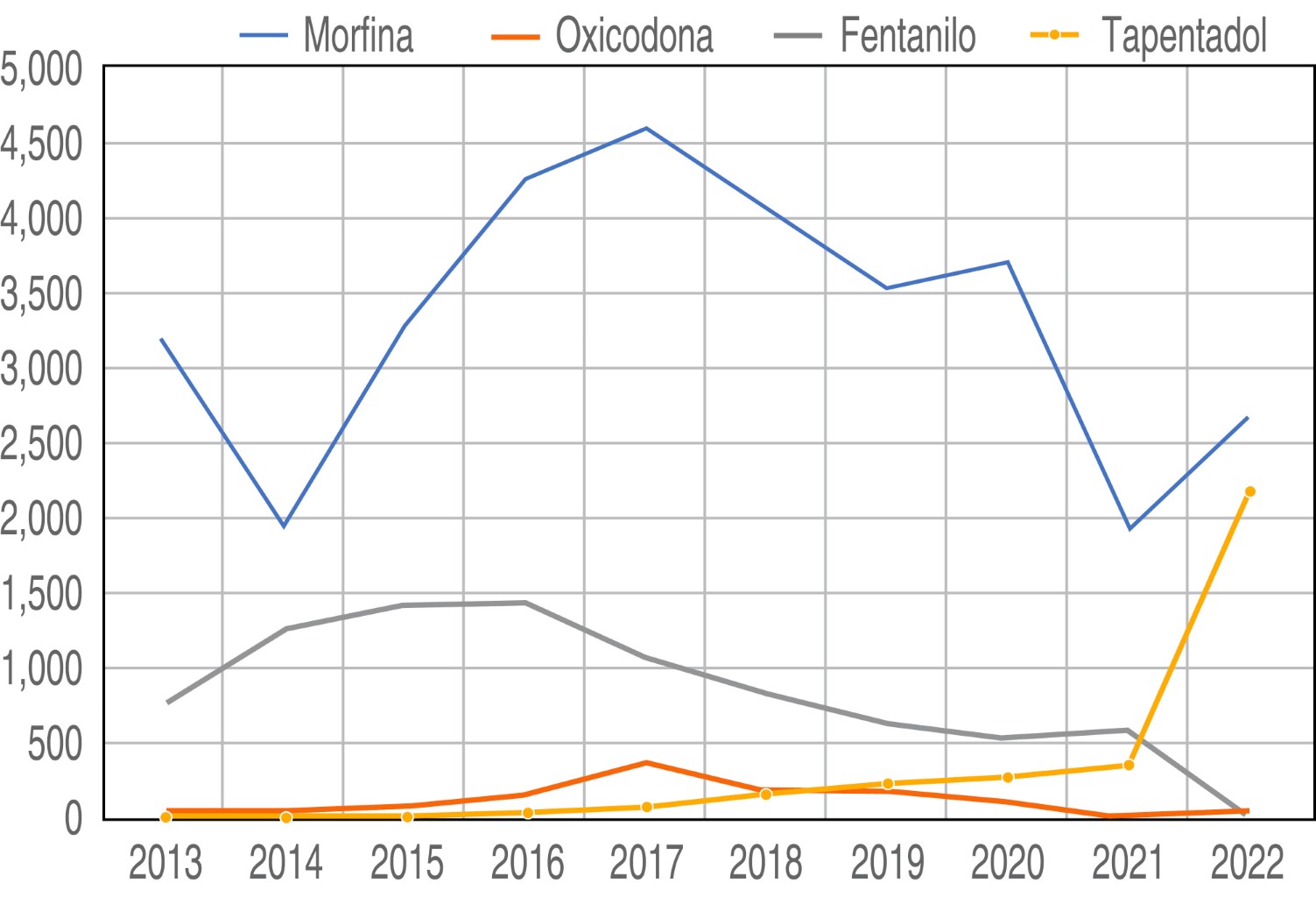Material and methods: data was requested from the clinical archives and biostatistics departments regarding care provided between 2012 and 2024, and from the pharmacy department on opioid consumption from 2013 to 2022. Information was also retrieved from INCan's internal records.