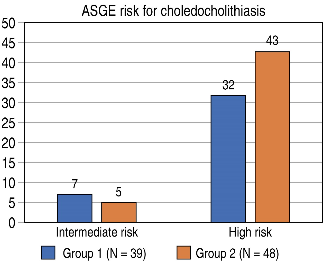 Gaudi et al. observed 88 typical cases (12%) in 734 procedures in their study, of which 46% of patients had a low risk, 40% of patients had a medium risk, and only 14% of patients had a high risk of choledocholithiasis.29 In our study, in the standard group, 18% had medium risk, and 82% had high risk. It is likely that these inverse proportions, between Gaudi's study and ours were explained because our patients had a gallbladder in situ, which makes it possible that some of the patients with normal cholangiography may have had spontaneously resolved choledocholithiasis (as mentioned above), which suggests reassigning the risk of the patients on admission when scheduling and performing ERCP.