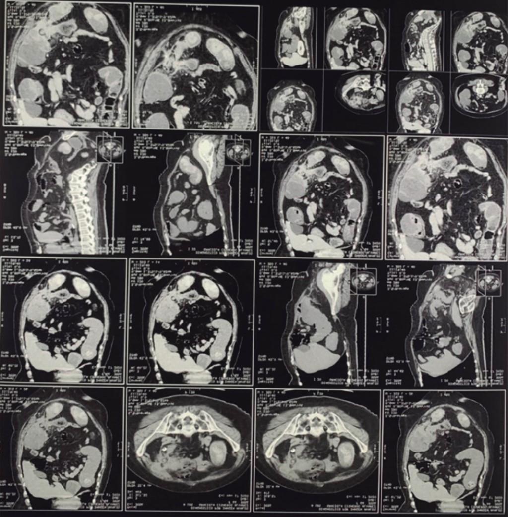 Abdominal actinomycosis is a disease with low incidence and prevalence, with granulomatous inflammatory characteristics caused by the Gram-positive bacterium Actinomyces israelii, manifesting as an abdominal tumor. It is characterized by presenting as an inflammatory pseudotumor.1 It is part of the normal flora of the gastrointestinal and genital tracts, which makes it especially difficult to diagnose preoperatively, aside from being a great simulator of tumors.2 It is relatively rare in clinical practice, with an annual incidence of 1/300,000 and a mortality ranging between 0-28%; the infection caused by this microorganism can be divided into a facial type 50%, thoracic 15%, abdominopelvic 20%, and other sites 15%. The manifestation is silent and in general can start with the palpation of an abdominal tumor; its behavior is of invasive characteristics to neighboring tissues.3 The most common anatomical sites of the digestive tract are the cecum, appendix, and transverse colon.4 The treatment of choice should be medical; in some cases, surgery is required in case of complications such as intestinal obstruction or perforation.5 It is important to make a differential diagnosis with other diseases such as neoplasms, inflammatory bowel disease, tuberculosis, diverticulitis, and ovarian tube abscesses.6 Cases of pancreatic infection have been described after instrumentation, either endoscopically or by pancreatic surgery, finding typical granulomatous lesions and data of fibrosis with insidious clinical signs that have imitated tumors with inadequate treatment.7