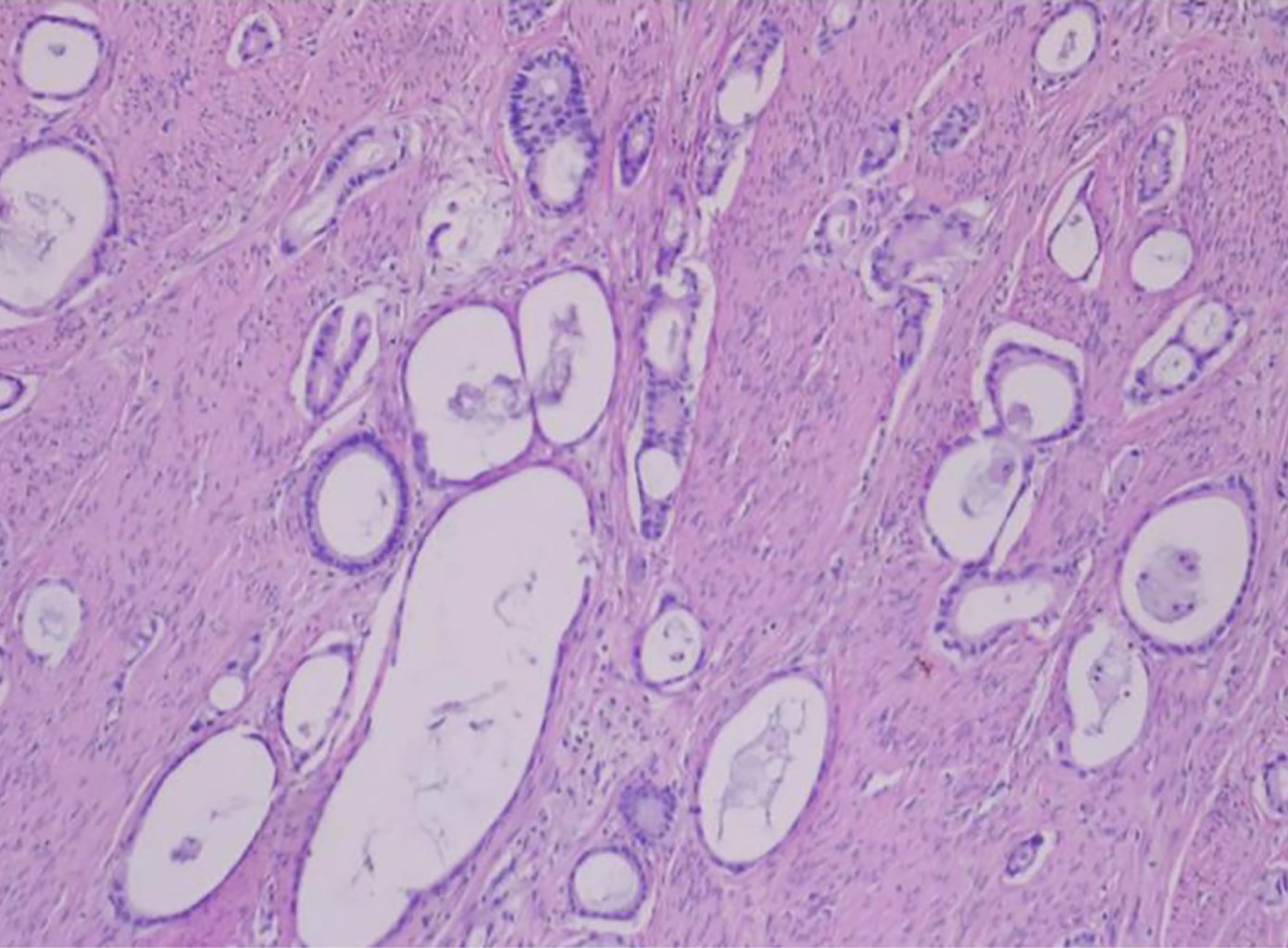 Introduction: the most common sites of gastric adenocarcinoma metastases are the liver, peritoneum, and lungs, with reports in the colon and rectum being rare. Clinical case: we describe a patient in remission of an intestinal gastric adenocarcinoma with resection and chemoradiation about three years before presenting a rectal recurrence with uterine involvement compatible with metastatic gastric adenocarcinoma. Conclusion: the latency theory is proposed as a possible cause of metastasis, especially in patients with a history of cancer, due to the time elapsed between the initial appearance and the final metastasis to the rectum.REFERENCES