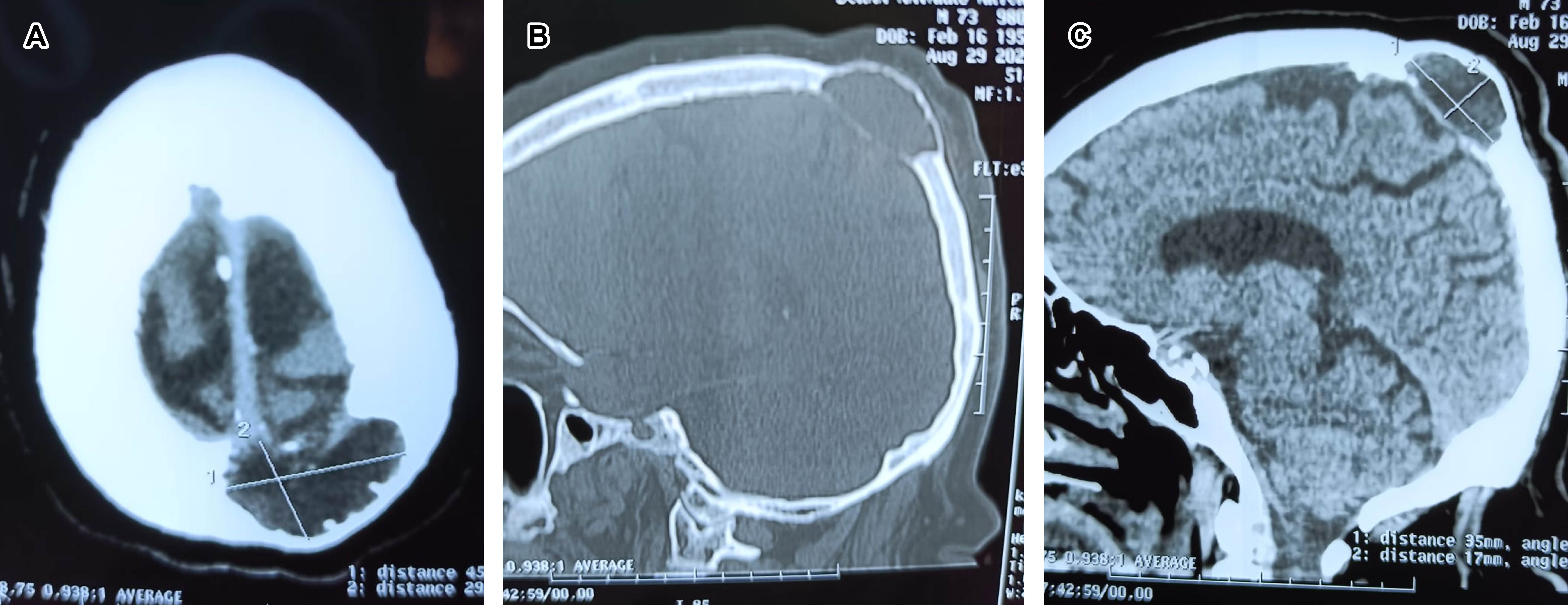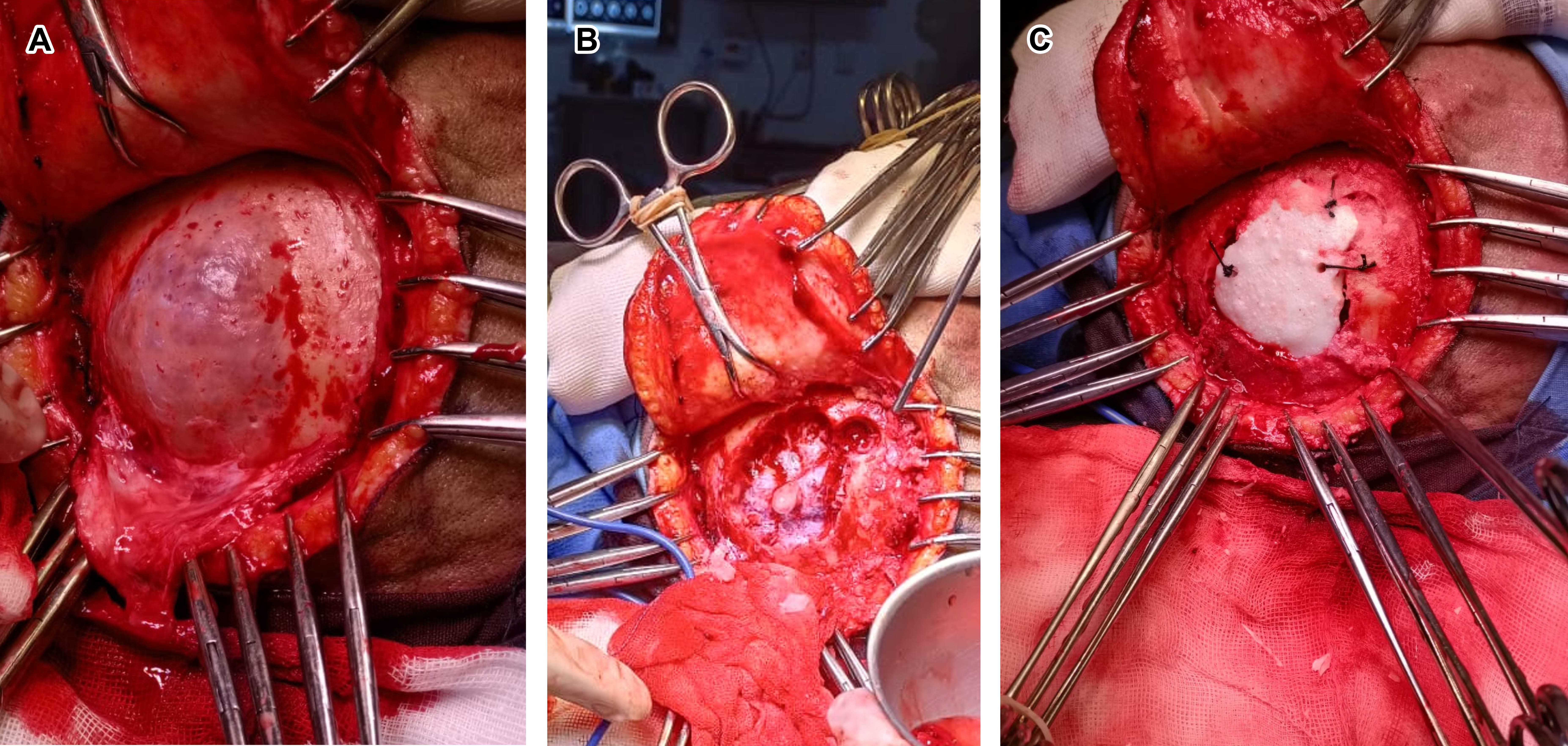 Leptomeniscal cyst (LC) is characterized by progressive growth of a cranial fracture, with an increase in dehiscence at its edges, which can lead to deformities; the dural defect underlying the fracture and the mechanical force of the cerebral pulsation causes herniation of the leptomeninges through the defect, causing LC. Its prevalence is 1.2% in children under three years of age. LC is usually detected in the first three years after the trauma, although it can go unnoticed for years. LC in adults is an atypical situation uncommonly described in the literature.
