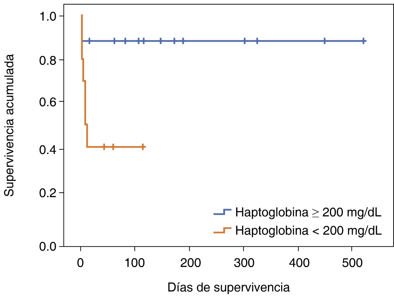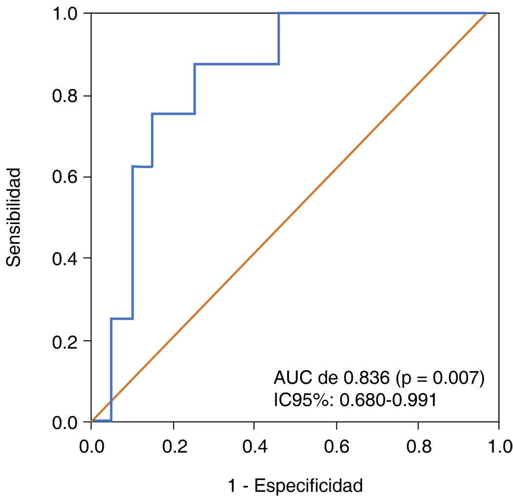 Introduction: the identification of serum haptoglobin levels has been mentioned as a related factor in cerebral vascular disease of aneurysmal origin, and may contribute to increased complications. It is a protein synthesized by the liver that binds to free hemoglobin after lysis of red blood cells and, in doing so, prevents hemoglobin-induced toxicity and facilitates clearance. Clinical studies in patients with subarachnoid hemorrhage indicate that patients with altered haptoglobin levels may be a high-risk group for bleeding-related complications and poor mortality outcomes. Objective: to determine the association of serum haptoglobin levels are predictors of mortality in aneurysmal subarachnoid hemorrhage in the Intensive Care Unit of the Bajío National Medical Center. Material and methods: observational, descriptive, longitudinal, analytical study. Conducted from March 1 to August 21, 2024 in patients admitted to the Intensive Care Unit with aneurysmal subarachnoid hemorrhage (aSAH). Serum haptoglobin values (HAPT 2) and survival of the included patients were recorded by means of non-probabilistic convenience sampling. Haptoglobin was related as a predictor of mortality. Results: twenty-seven patients who met the selection criteria were included, 17 women (63%), with a mean age of 51.48 ± 15.05, a history of systemic arterial hypertension was recorded in 13 (48.1%) and type 2 diabetes mellitus in five (18.5%) patients. Neuromonitoring with Doppler ultrasound reported ICP of 21.03 ± 4.01, ICH (intracranial hypertension) in six (22.2%); serum haptoglobin (Hapt 2) was 167.68 ± 110.4 mg/dL. Vasospasm was detected in seven (25.9%) of the patients. Not survived eight (29.6%) patients, and the mean population survival days was 109.04 ± 140.24. ROC analysis with an AUC of 0.836 (p = 0.007) 95%CI (0.680-0.991). Conclusion: in patients with aSAH we suggest using serum haptoglobin levels as a predictor of mortality.REFERENCES