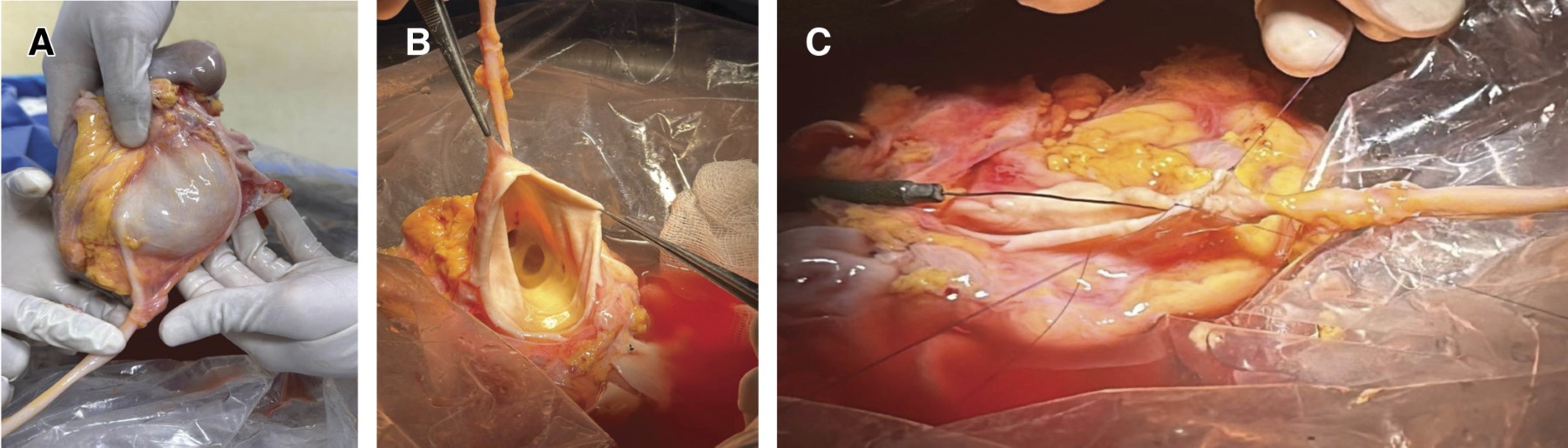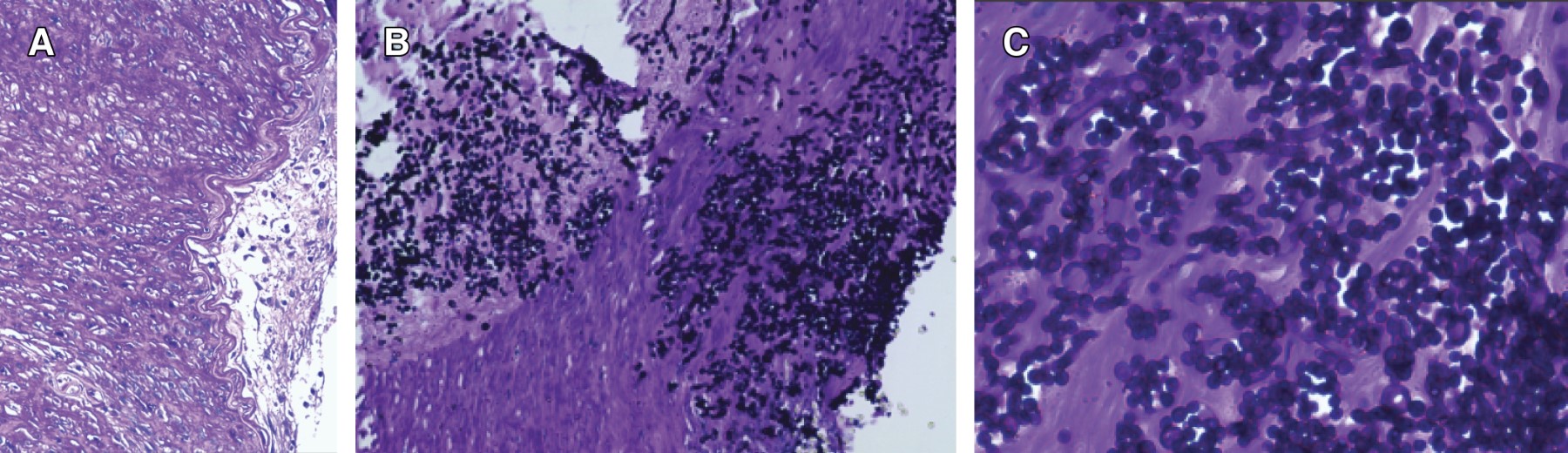 Introduction: graft function and survival in postransplant recipients are compromised in cases of invasive Candida sp. infection due to abrupt presentation and nonspecific symptoms. Approximately 1.3% of recipients will develop invasive fungal infection, 49% secondary to Candida albicans, followed by C. glabrata and parapsilosis. It is transmitted from donor to recipient in 0.001% of cases, only 65.4% receive antifungal treatment in the presence of positive perfusion fluid cultures. The incidence of invasive candidiasis is 0.001%, independent risk factors for C. albicans infection have not yet been identified. There are few reported cases of persistent infection and failure of vascular reconstruction after graft nephrectomy. Case report: 24-year-old female patient, diagnosed with lupus nephropathy, received a cadaveric donor kidney transplant without complications. Pre-transplant urine culture was positive for C. albicans, interpreted as contamination. The donor (21 years old, KDRI 0.66/KDPI 13%) presented pyelocaliceal dilatation due to probable ureteral stenosis, repaired during bank surgery. At 14 days he suddenly presented hypovolemic shock, the surgical exploration reported complete dehiscence of the arterial anastomosis with extension to the renal hilum. Graft nephrectomy and vascular reconstruction of the external iliac artery with PTFE patch was performed. The pathology of the graft reported hydronephrosis and acute/chronic granulomatous pyelonephritis associated with filamentous fungus, suggestive of Candida sp. Nine days later she presented sudden hypovolemic shock and cardio-respiratory arrest, open vascular exploration was performed, reporting PTFE patch dehiscence, external iliac artery resection was performed and distal vascular reconstruction with PTFE femoro-femoral bridge (banded, 10 mm), confirming Candida albicans invasion by histopathology and cultures. He started anidulafungin, was adjusted to Fluconazole, completing six weeks of treatment. Two months of follow-up without recurrence. Discussion: invasive infection by Candida sp. frequently presents unfavorable outcomes with any type of treatment in terms of graft and patient survival. Few cases require additional interventions due to persistence of the infection. Trans-surgical macroscopic assessment does not correlate with the degree of infection, so it is difficult to determine the extent of resection. Even with the risk of contamination of the synthetic vascular material, adequate short-term success rates have been reported. Conclusion: aggressive surgical treatment could improve patient survival outcomes. Performing native vessel resection and distal revascularization initially could be a valid option in selected cases. We should not underestimate the impact of positive pretransplant cultures, even in the absence of symptoms. It is recommended to send native tissue samples to rule out residual candidiasis. Close follow-up is required when using synthetic materials for vascular reconstruction. A consensus has yet to be reached to determine the best management for cases of invasive candidiasis and thus improve outcomes in terms of graft function, due to the high rate of nephrectomies performed.REFERENCES