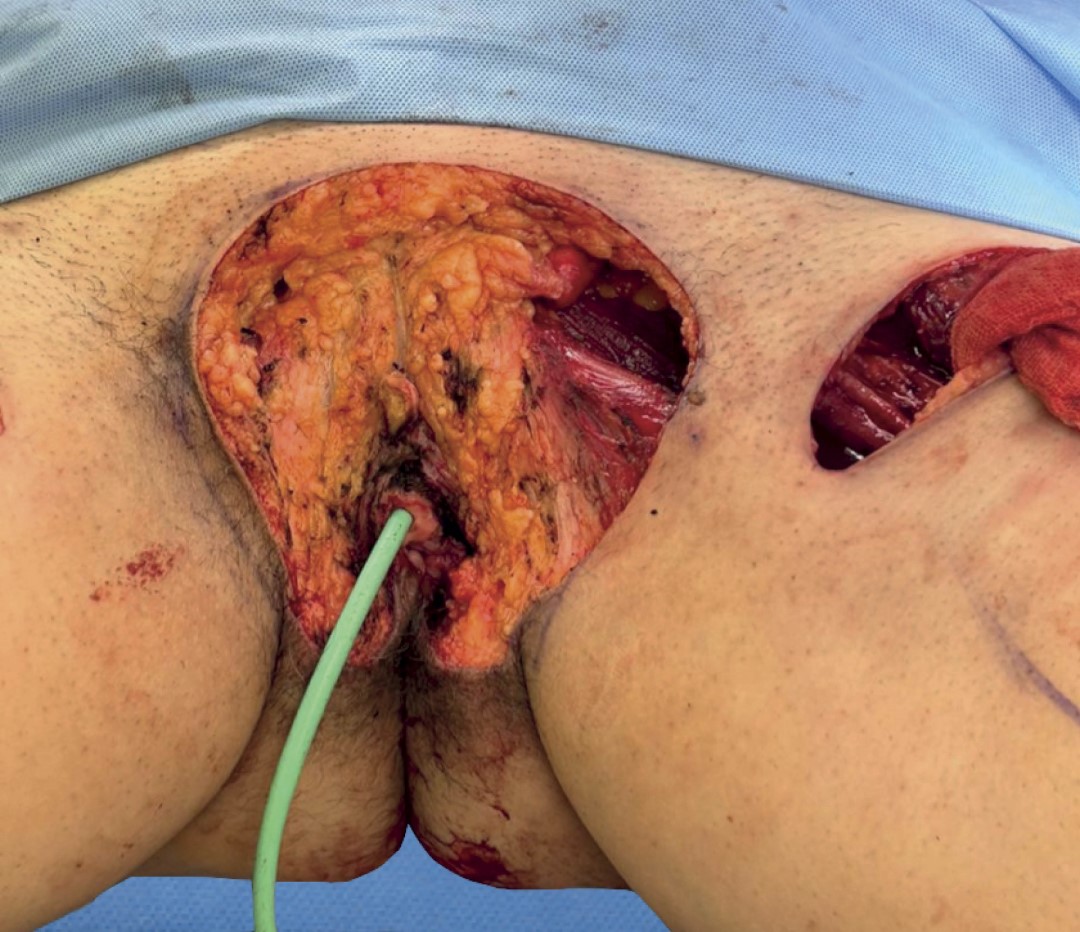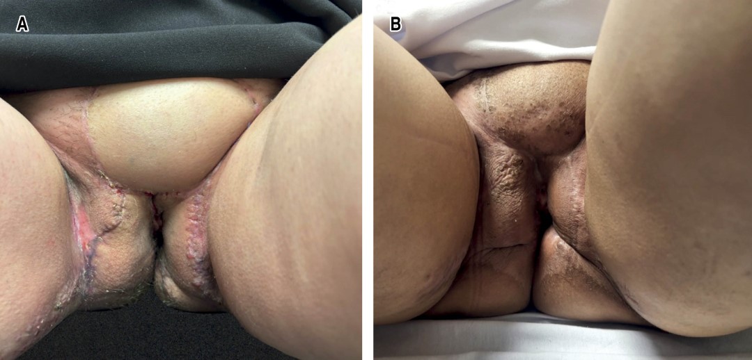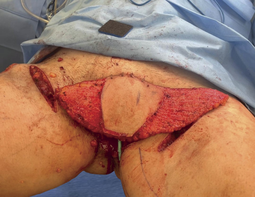 Vulvar reconstruction with pedicled and pudendal anterolateral thigh flap, secondary to mammary-type vulvar adenocarcinoma associated with Paget's disease