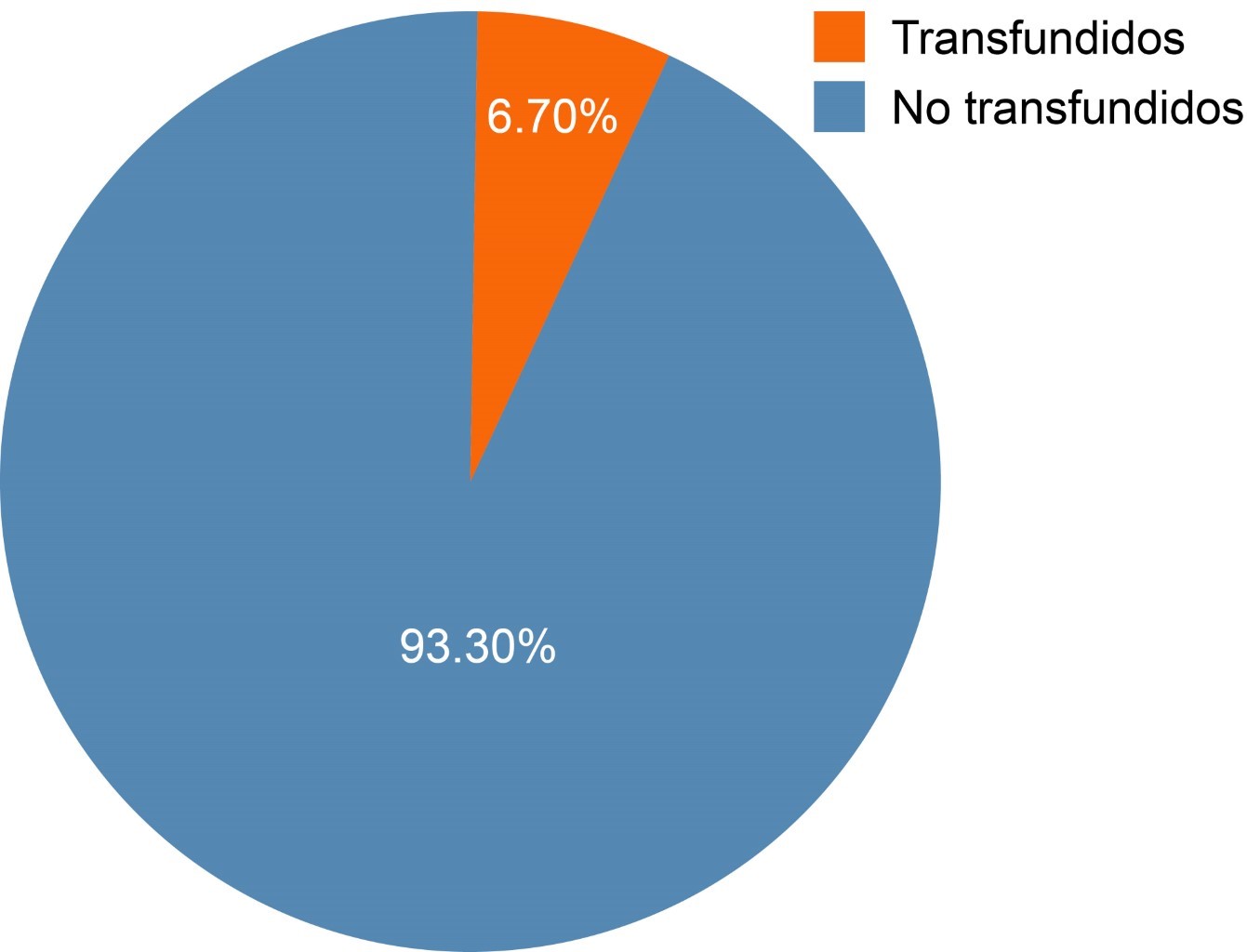 Conclusions: in the United States, it is estimated that 600,000 TKAs are performed annually, of which 20-44% require blood transfusions. Compared to our incidence of 6.7% in our center, it represents a substantially lower transfusion rate.