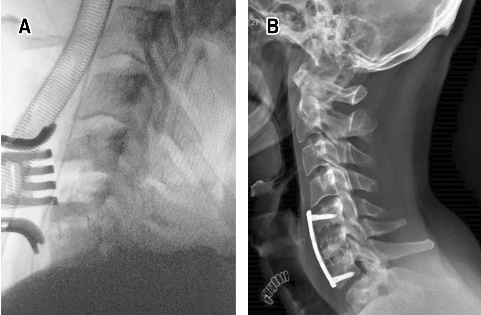Wagner SC, Kang DG, Helgeson MD. Traumatic migration of the bryan cervical disc arthroplasty. Global Spine J. 2016; 6: e15-e20. doi: 10.1055/s-0035-1550092.