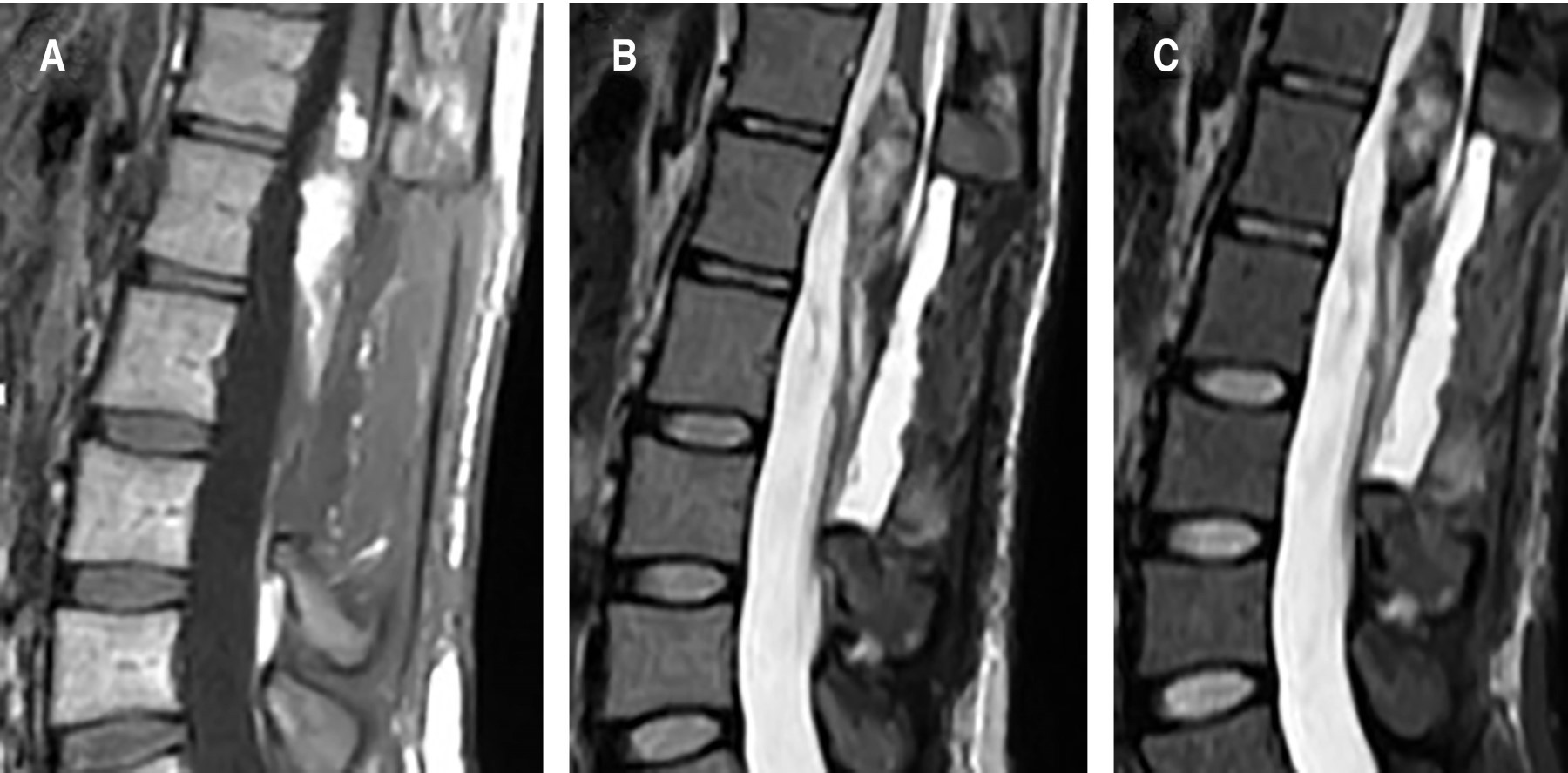 The most useful preoperative diagnostic study is magnetic resonance imaging with fat suppression,7,15 also radiologically a thinning of the pedicles can be observed at the level of the injury.16