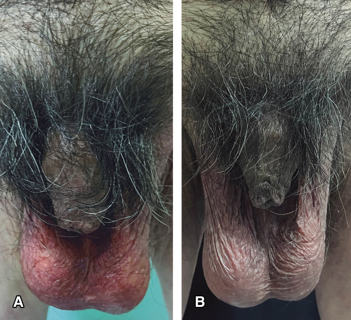 Khalil S, Kurban M, Abbas O. Red scrotum syndrome: An update on clinicopathologic features, pathogenesis, diagnosis, and management. J Am Acad Dermatol. 2022; 87: 614-622.