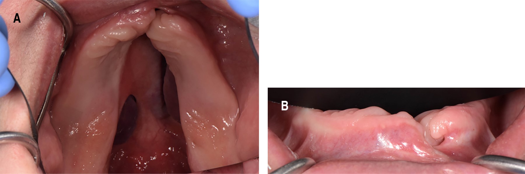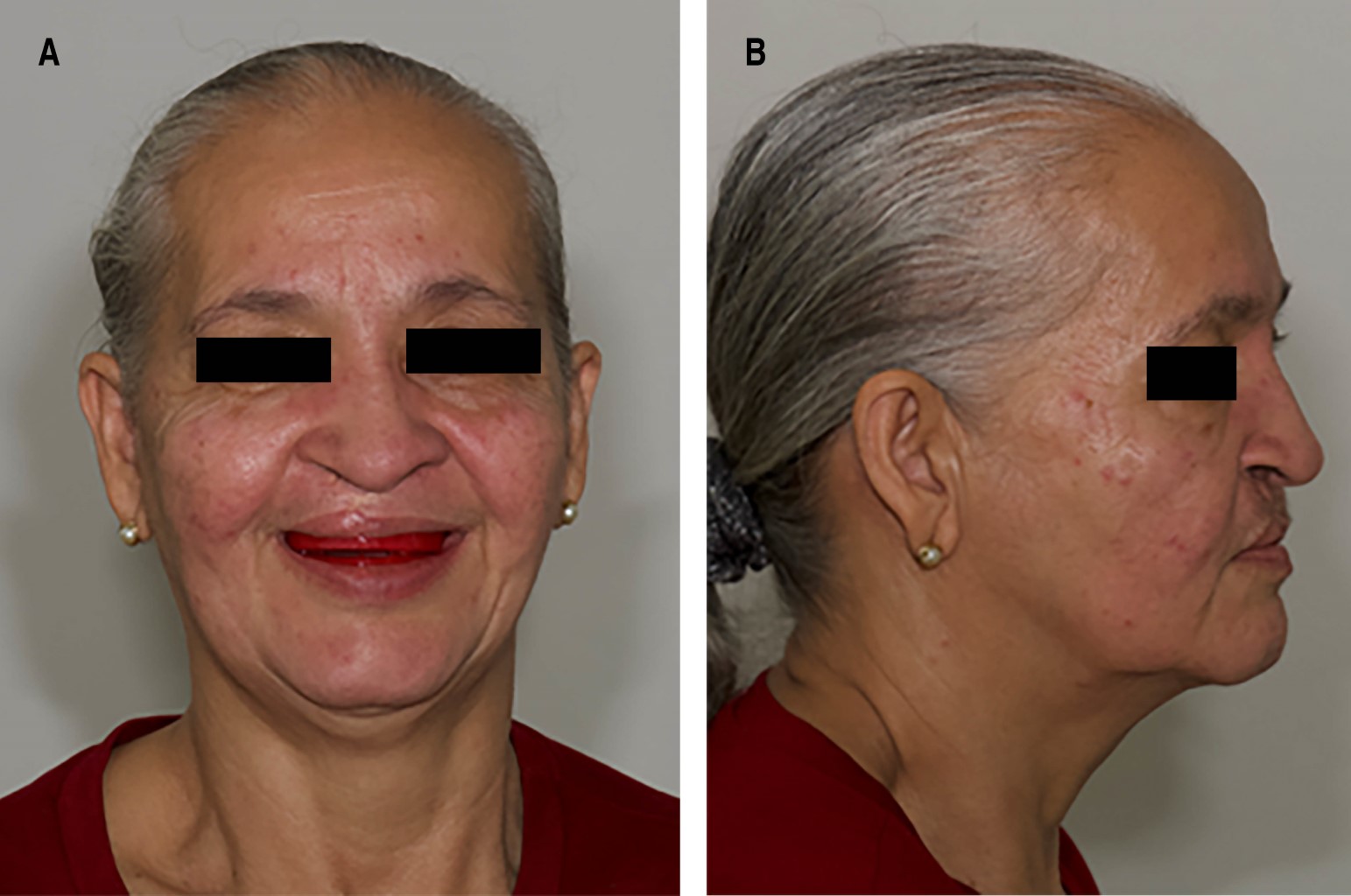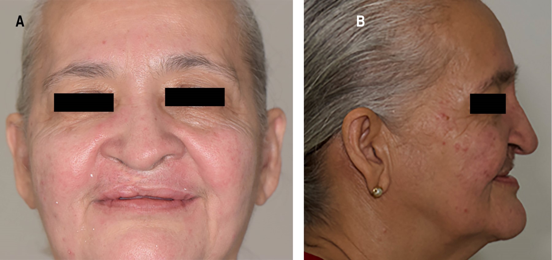 A 62-year-old female patient with a history of cleft lip and palate, without associated systemic comorbidities, a domestic worker, attended the IPS CES in Sabaneta to perform an upper total prosthesis with a postgraduate course in oral rehabilitation. The patient gave explicit written consent to publish her clinical details and photographs.
