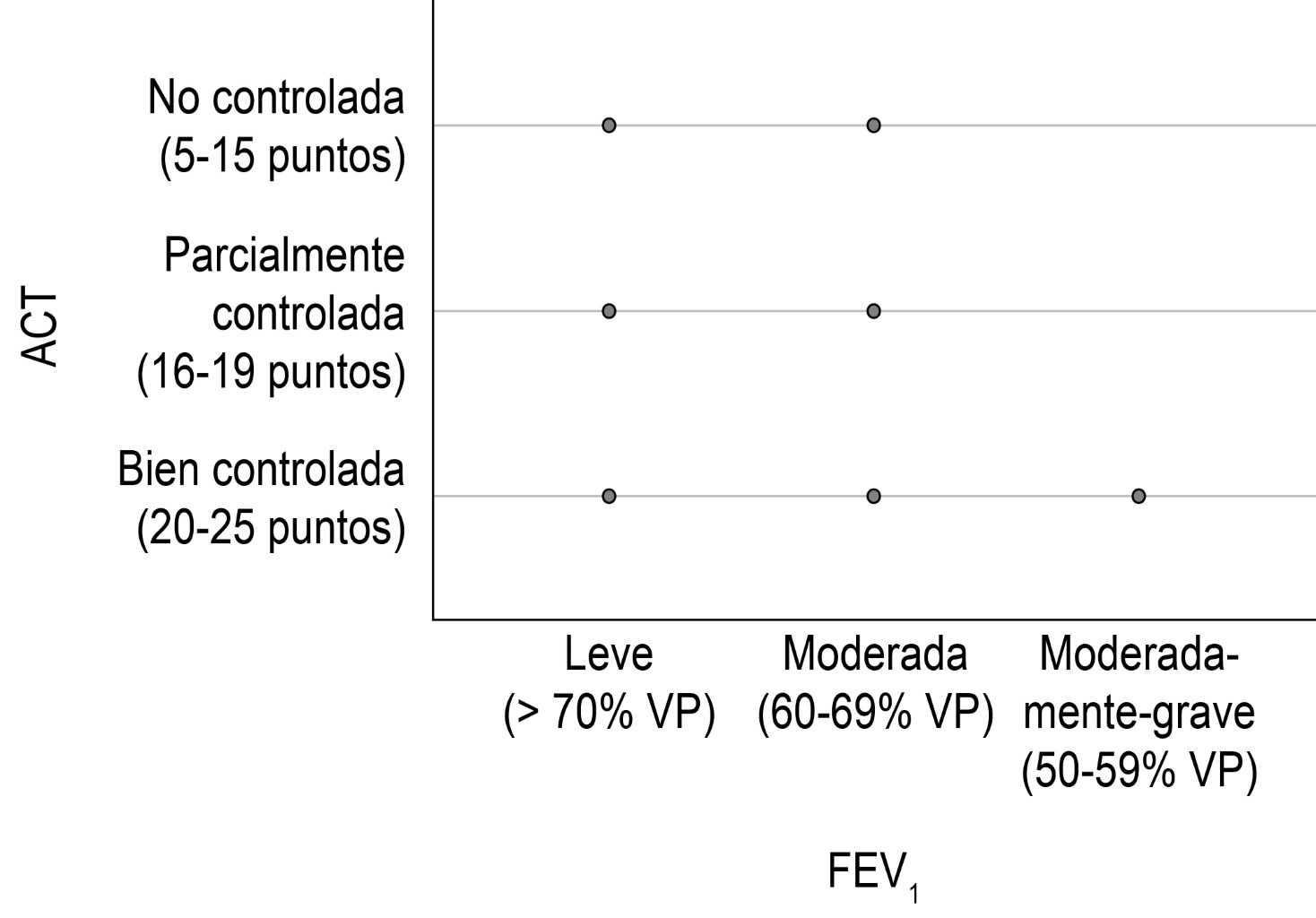 Material and methods: observational, analytical, cross-sectional, prospective study. Data from ACT and FEV