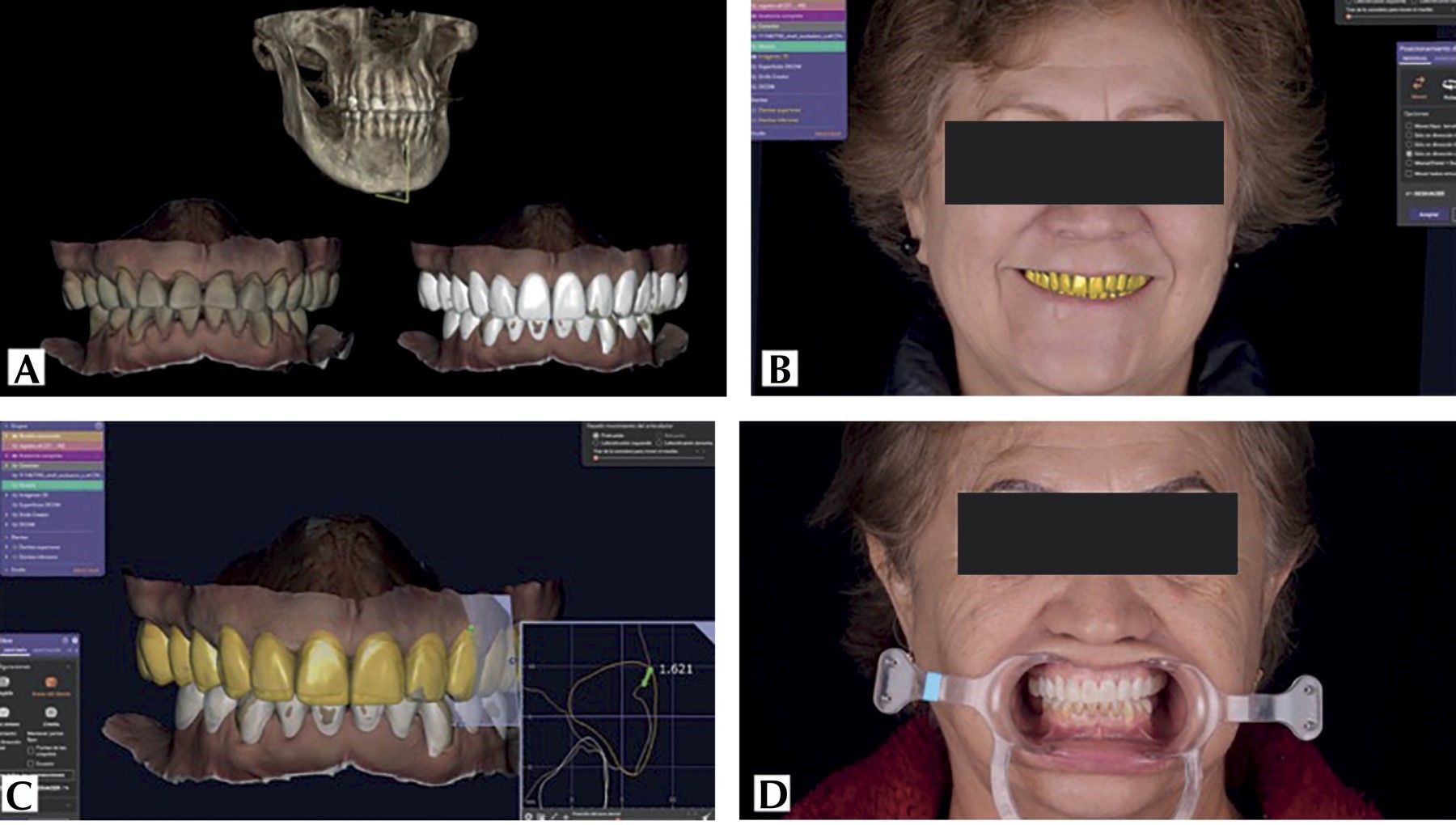 Clinical case: a 70-year-old female patient, ASA I, referred by the Prosthodontics Department for crown lengthening in order to achieve compensation of the dentogingival tissues with the occlusal plane correction through the use of crown lengthening previously planned in EXOCAD. Pre and transoperative time was reduced, obtaining a more accurate symmetrical smile and gingival margin without compromising occlusion and periodontal tissues. Computer-aided design and manufacturing broadens the perspectives in a treatment plan, three diagnostic methods such as tomography, intraoral scanning and facial photographs are used together to perform a digital wax-up and articulator.