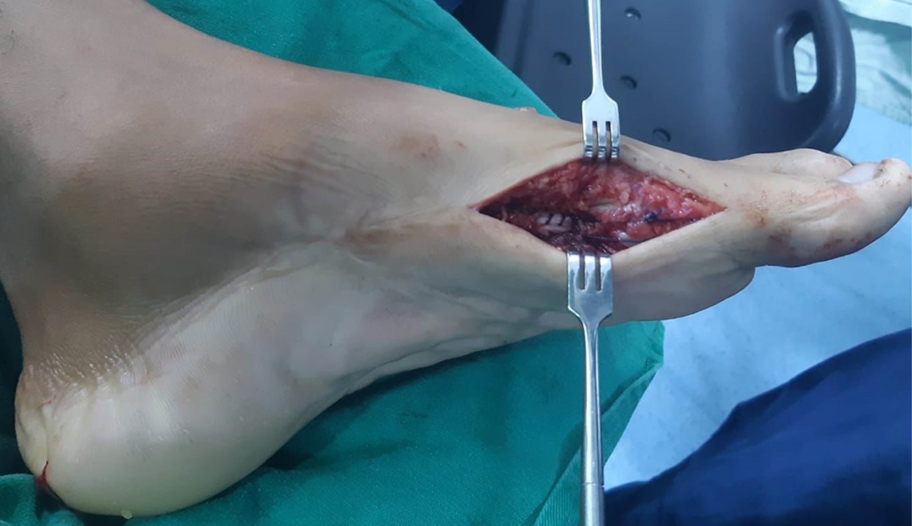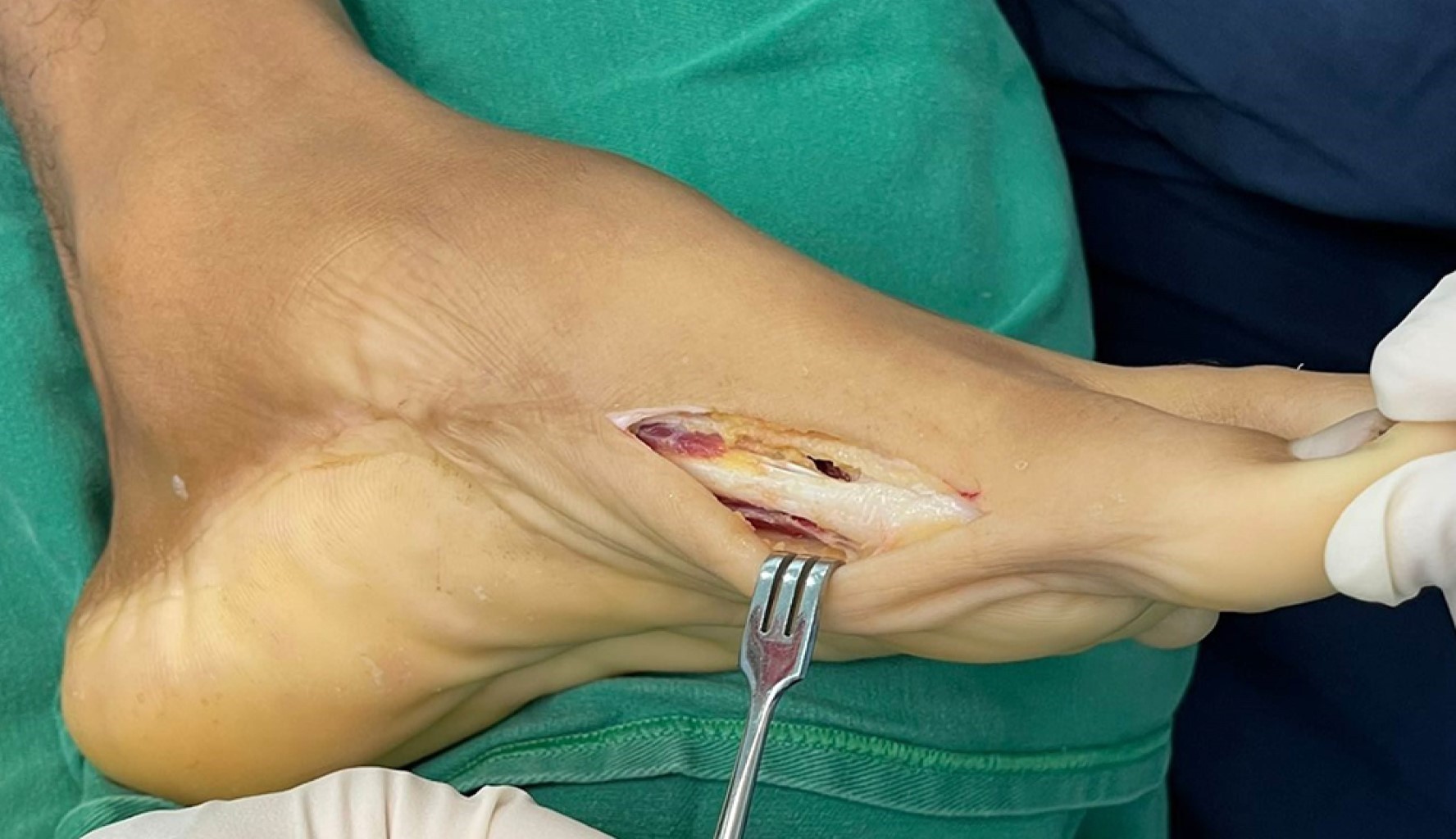 Introduction: congenital talipes equinovarus (CTEV) is a highly prevalent deformity that affects patient functionality. Even with adequate treatment, overcorrection can result in deformities such as hallux alterations. The most common deformity in this context is hallux flexus, or dorsal bunion; however, we present a case of hallux varus as a complication not previously reported in the secondary literature secondary to the management of CTEV. Case presentation: a 17-year-old patient with a history of CTEV was treated with a posterior internal release (PIR) at five years of age. He presents with left hallux varus with significant functional impairment. Soft tissue release and transfer of the abductor hallucis and extensor hallucis longus tendons are proposed. During follow-up, adequate maintenance of the deformity correction is evident with no recurrence at 18 months. Conclusion: hallux varus after PIR in CTEV is an unusual complication, whose etiology lies in persistent contracture or fibrosis of the adjacent capsuloligamentous and musculotendinous structures. Treatment should address the various dynamic and static alterations through specific soft tissue releases, tendon transfers, or arthrodesis. In patients with flexible hallux valgus, restoring muscle balance may be sufficient to correct the deformity and prevent recurrence.REFERENCES