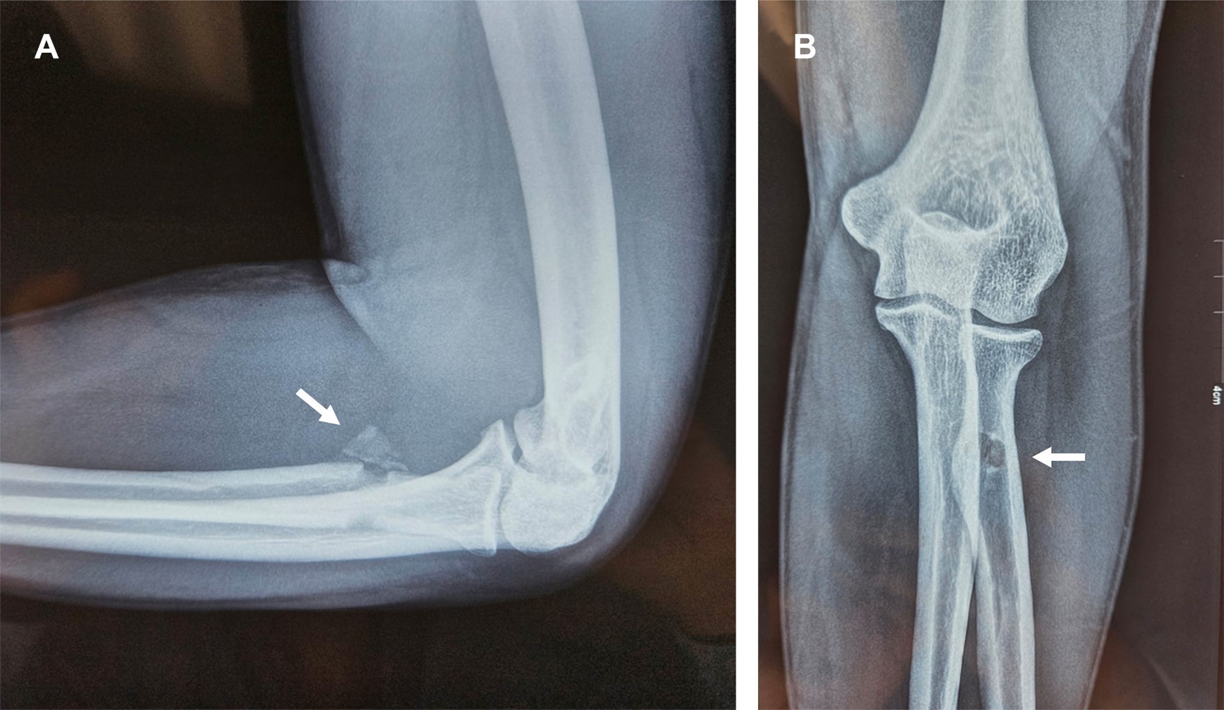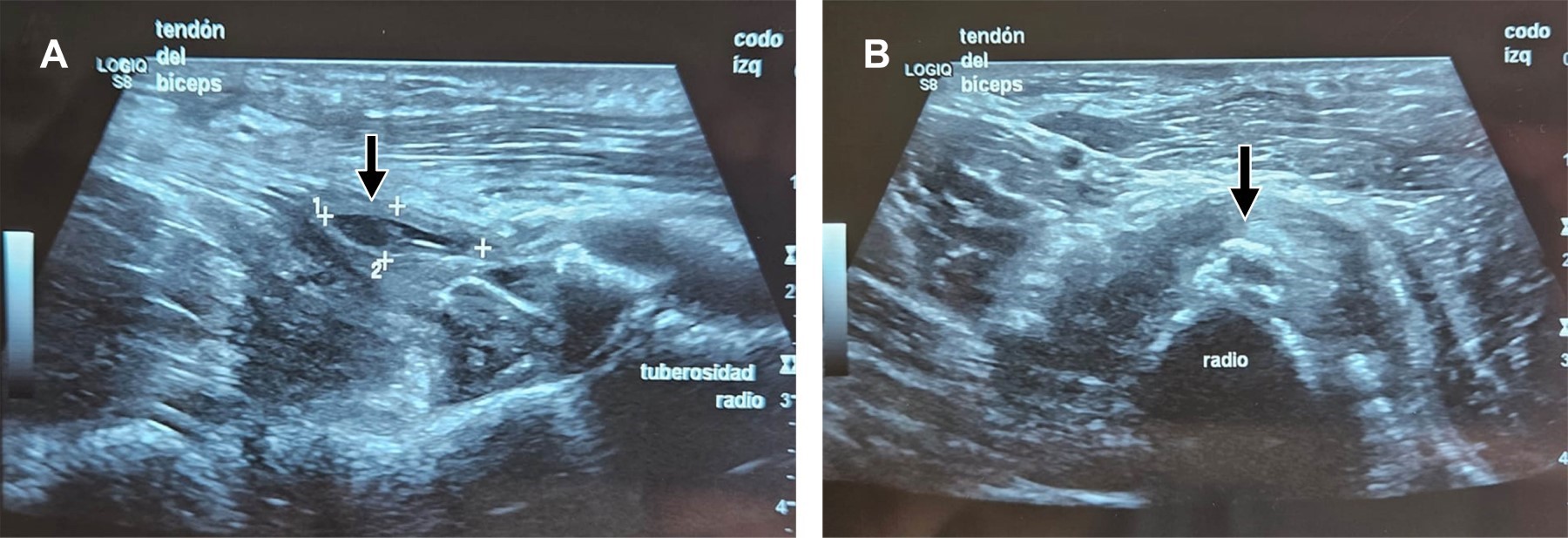Avulsion fracture of the distal tendon of the biceps brachii (TDB) is rare, with an incidence of 5.35 per 100,000/year. It is observed in athletes performing a forced eccentric brachial biceps contraction. The injuries are evaluated with the "hook test". Tendon repair is performed in acute injuries involving > 50%. Usually, reinsertion through an incision is performed by fixation to the second cortex with a "button" type device. There is no consensus on the best repair method; surgical complications are heterotopic ossification, rigidity, external cutaneous neuropraxia of the antebrachial nerve, and injury to the posterior interosseous branch of the radial nerve.