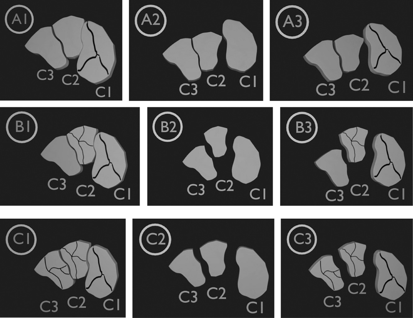 Mehlhorn AT, Schmal H, Legrand MA, Südkamp NP, Strohm PC. Classification and outcome of fracture-dislocation of the cuneiform bones. J Foot Ankle Surg. 2016; 55(6): 1249-55. doi: 10.1053/j.jfas.2016.01.019.