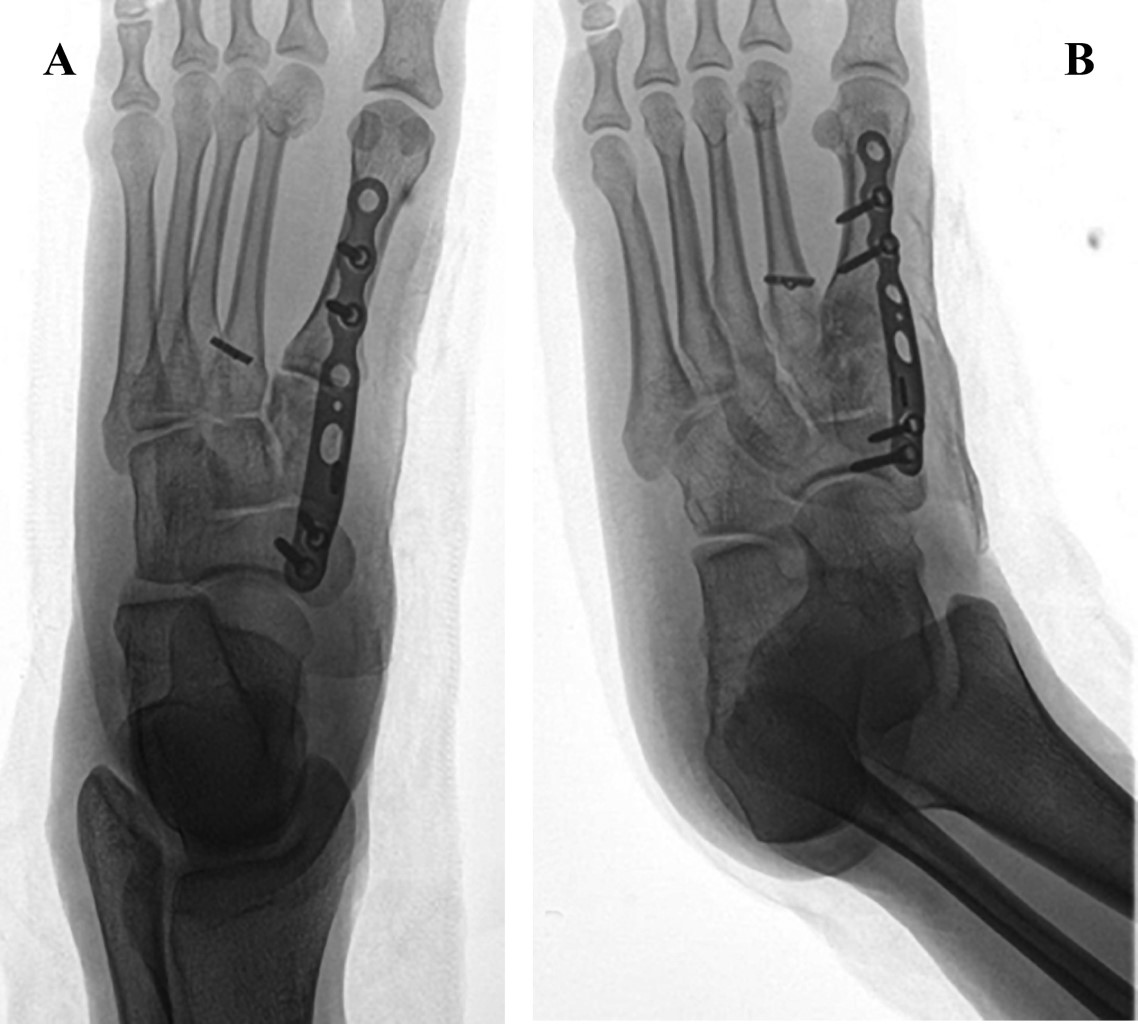 Fraser TW, Miles DT, Huang N, Davis FB, Dunlap BD, Doty JF. Radiographic outcomes, union rates, and complications associated with plantar implant positioning for midfoot arthrodesis. Foot Ankle Orthop. 2021;6(3):24730114211027115. doi: 10.1177/24730114211027115.