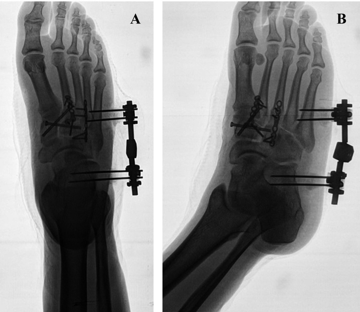 Hamilton GA, Ford LA. External fixation of the foot and ankle. Elective indications and techniques for external fixation in the midfoot. Clin Podiatr Med Surg. 2003; 20(1): 45-63. doi: 10.1016/s0891-8422(02)00053-8.