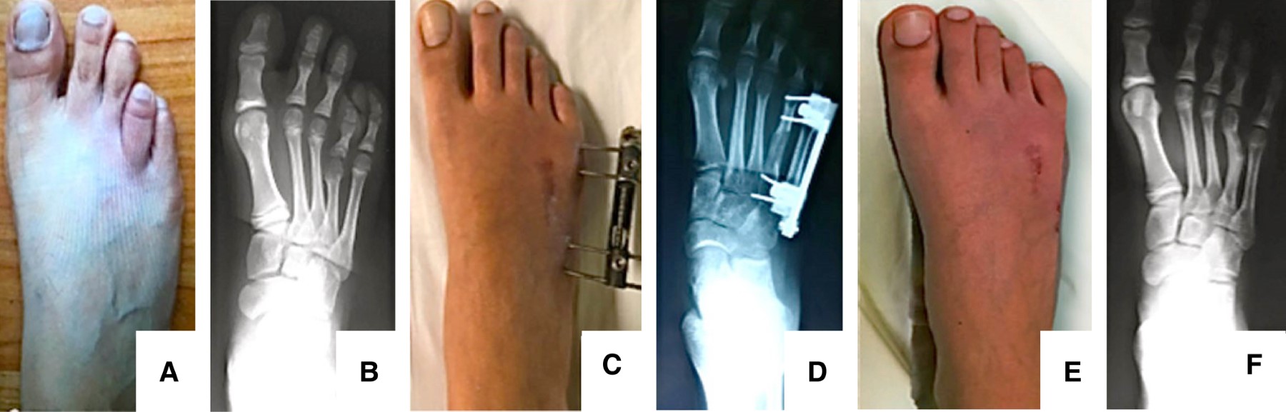 Barbier D, Neretin A, Journeau P, Popkov D. Gradual metatarsal lengthening by external fixation: a new classification of complications and a stable technique to minimize severe complications. Foot Ankle Int. 2015; 36(11): 1369-1377. doi: 10.1177/1071100715593373.