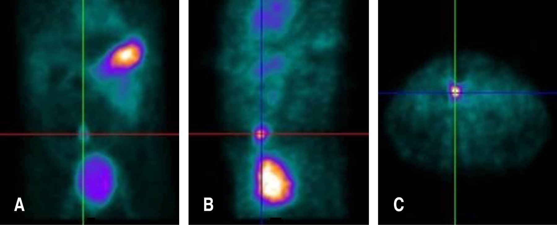 99mTc), in an 8-year-old patient, in whom the diagnosis was confirmed by surgery and histopathology