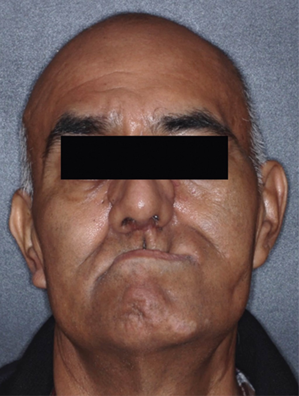 Mucormycosis is a rare, acute and frequently lethal disease caused by aerobic saprofit fungi and opportunists of the Mucoromycotina subdivision (before Zygomicota). Several clinical presentations have been described: rhino-orbital-cerebral, pulmonar, gastrointestinal, mucocutaneous and disseminate, rhino-orbital-cerebral mucormycosis (ROCM) is frequently associated To diabetic patients with inadequate control or hematological diseases. The rhino-orbital-cerebral presentation has a quick development with high morbidity and mortality in immunocompromised patients, with the need of a multidisciplinary medical and surgical approach. Case report of a patient with rhino-orbital-cerebral mucormycosis associated to uncontrolled diabetes mellitus DM2, palatine and cutaneous invasion, who was surgically treated with total bilateral maxillectomy, showed no evidence of recurrency in the next 16 months of follow up.