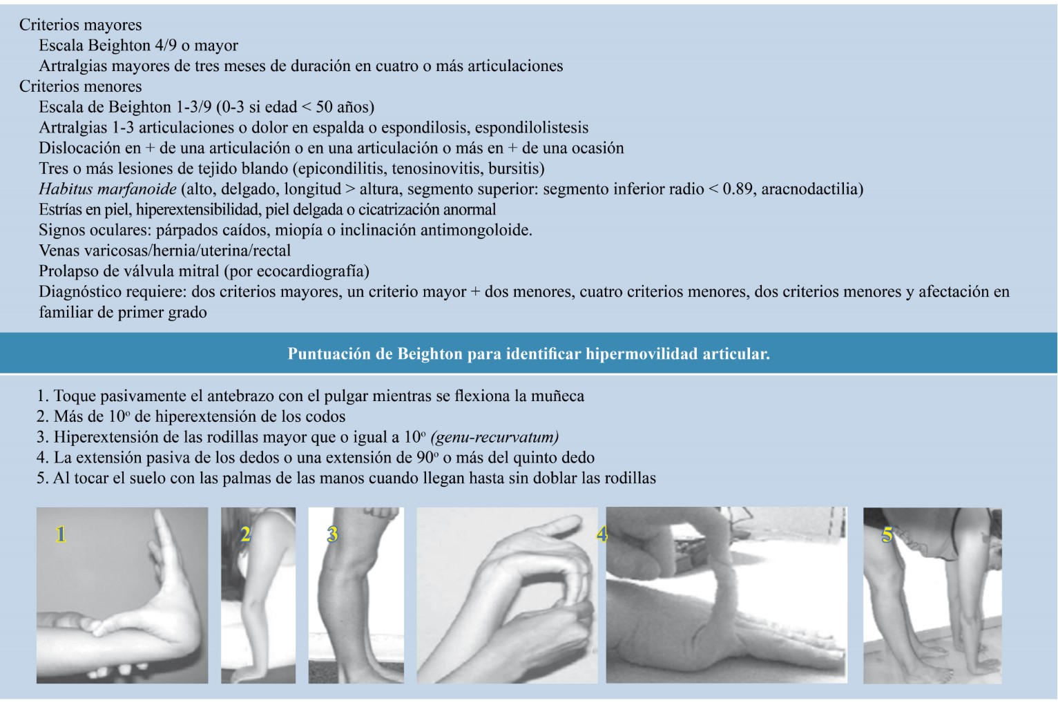 Joint hypermobility syndrome is an inherited disorder with autosomal dominant pattern; is characterized by joint hyperlaxity and musculoskeletal pains. Thermal hypermobility refers to the increase in active or passive movements of joints based on their normal ranges. Joint hypermobility syndrome also has gastrointestinal symptoms, sleep disorders, fibromyalgia, psychological disorders, migraine headache, ophthalmic, autonomic, among others. To diagnose hypermobility syndrome, Brighton's criteria are generally accepted and published in 1998. This criteria also known as benign joint hypermobility syndrome. The term benign is used to distinguish it from other more severe conditions such as Ehler-Danlos (classic or vascular type), Marfan syndrome, and imperfect osteogenesis. Treatment with physiotherapy and pharmacological means help improve patients' quality of life.