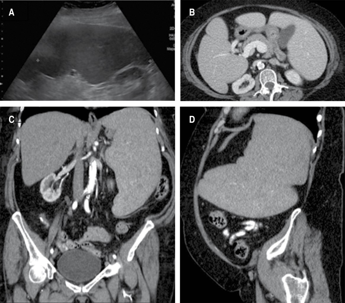 Results: Satisfactory postoperative evolution and patient discharge at day 4 with significant haemoglobin rise and cese of abdominal pain.