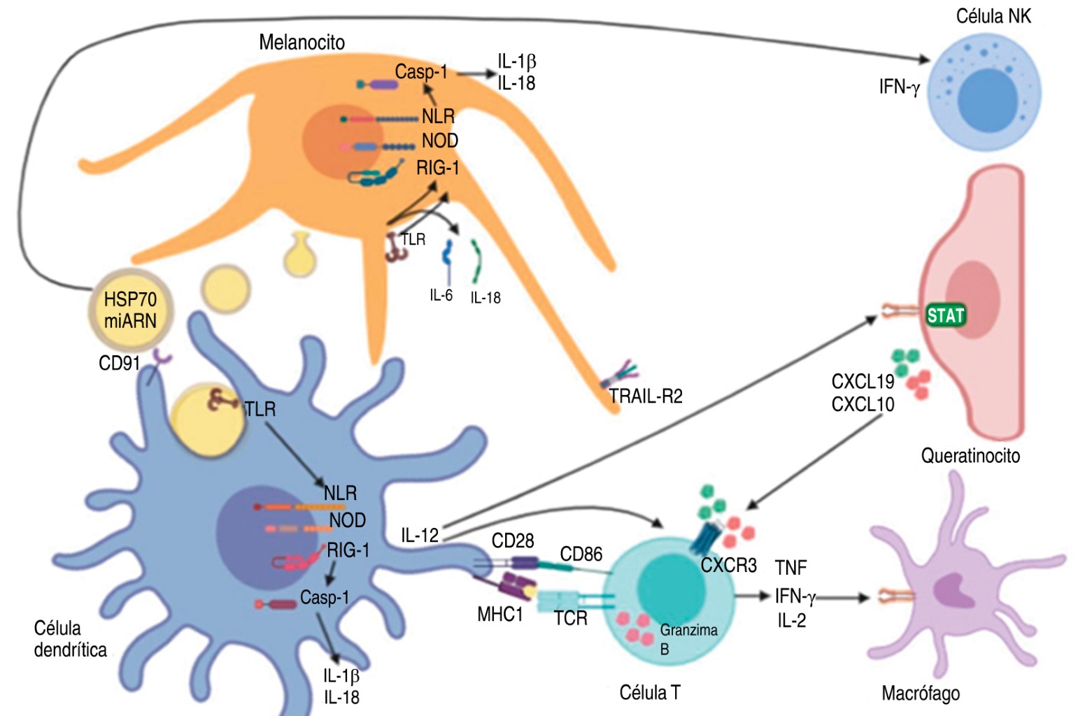 Richmond JM, Frisoli ML, Harris JE. Innate immune mechanisms in vitiligo: danger from within. Curr Opin Immunol. 2013; 25: 676-682. Available from: http://dx.doi.org/10.1016/j.coi.2013.10.010