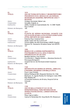 TÍTULO: REPARACIÓN DE HERNIA DE SPIEGEL, UMBILICAL