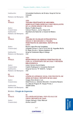 TÍTULO: TRAUMA DE VÍA BILIAR EXTRAHEPÁTICA