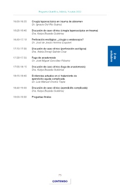 16:25-16:40 Discusión de caso clínico (cirugía laparoscópica en trauma)