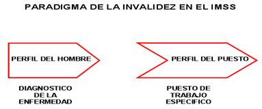 Como se muestra en la siguiente figura, existía un paradigma en el proceso de determinación de la invalidez en el que se comparaba el perfil del hombre representado por el diagnóstico de la enfermedad, sin tomar mucho en cuenta las limitaciones funcionales que esa enfermedad generaba al trabajador, contra la descripción de un puesto de trabajo que relataba el propio trabajador.